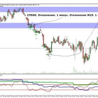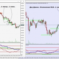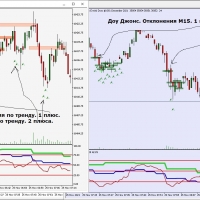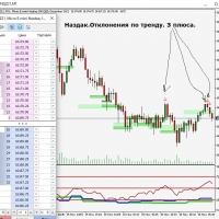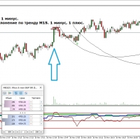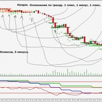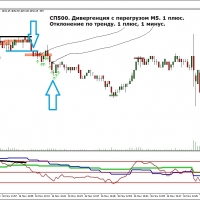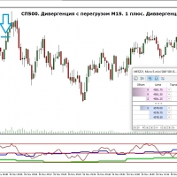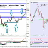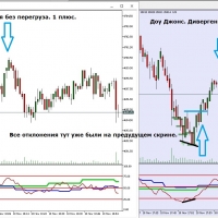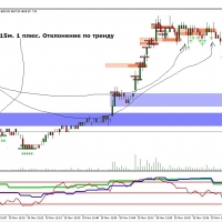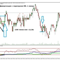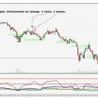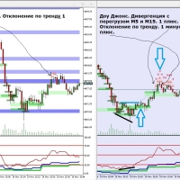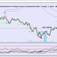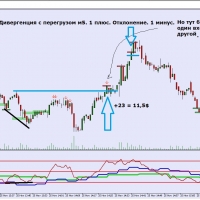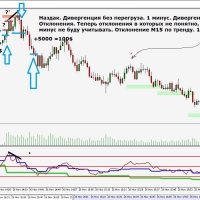 Я  смотрю только отклонения и дивергенции. Отклонения у меня только двух видов: отклонения (куда теперь входят и отклонения к М15) и отклонения по тренду. Отклонения по тренду это и есть отклонения с перегрузами, либо по М5, либо по М15. За вчерашний день насчитал 15 плюсовых отклонений и 6 минусовых. Тейк и стоп 1 к 2. Итог на микро бы был плюс 3, то есть 15$. Дивергенции смотрю и без перегруза и с сомнительной 4 волной. Дивергенций было 4 плюсовых и 1 минусовая. Но полностью по стратегии была только 1 плюсовая дивергенция.