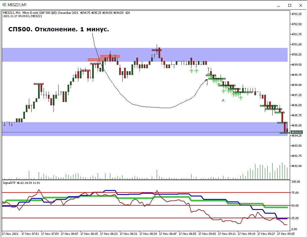 Евгений! Я смотрю все отклонения. В том случае вход был по 2 сигналу из методички Дмитрия. Появились стрелка и подсветка.
