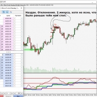 За вчерашний день впервые по отклонениям получился большой минус, учитывая, что стоп у меня в два раза больше тейка. Плюсовых отклонений получилось 7, а минусовых 11. По дивергенциям получилось 3 плюсовых и 1 минусовая, но все они без перегрузов.