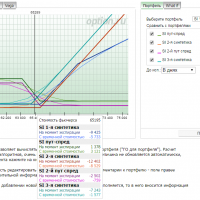 Дмитрий Я построил сначала по одной синтетике по RTSу и SI, затем построил по одному пут-спреду как на РТС так и на SI, получилось... при походе цены РТС вниз Я получаю профит от пут спреда построенный на РТС, но минус по синтетике по РТС, и в этот же момент получаю минус (незначительный) по пут спреду на SI, но плюс по синтетике построенной на SI....в результате в дальнейшем роллируя позицию по синтетике и пут-спреду на РТС я закрыл пут спред, т.к. у РТС появилась хорошая поддержка, там же после закрытия пут спреда построенной ранее на РТС я закрыл, т.к. не видел необходимости ее держать. Потом Я построил на РТС от этой поддержке еще одну синтетику,....... далее при походе цены SI вниз построил 2-ю синтетику и 2-й пут спред на SI, еще чуть позже при росте РТС и снижения SI я построил 3-ю синтетику на SI.....На выходе получил: 2 синтетики по РТС с закрытым пут спредом на РТС и 3 синтетики на SI с двумя открытыми пут-спредами на SI. Профиль выкладываю для вашего вердикта