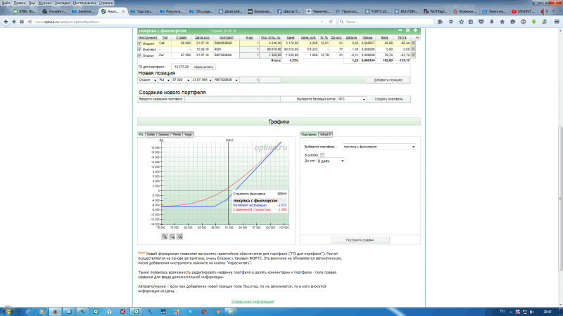 все эксперемент закончился.При перезагрузке конструкция пропала.Сайт начал глючить и когда я его перезагрузил все исчезло.Но как видим направление было выбрано верно и я думаю,что в ближайшее время цель 93800 будит достигнута.На цене 95000 профит составлял 2700 рублей.Да торговать опционами намного комфортнее,но как я писал ранее при достижении цены 93800 профит будет 7400
