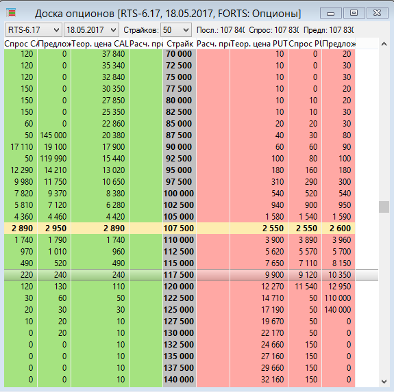 Было принято решение строить конструкцию Синтетика со следующими параметрами (дата экспирации опционов 18/05/17):