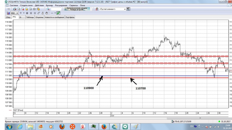 На 110700 прям четкие экстремумы в начале-середине октября просматриваются. Плюс четко от 110700 в пятницу цена отбилась. На 110900 я такой картинки не вижу. Или может я как-то не так трактую эти уровни?
