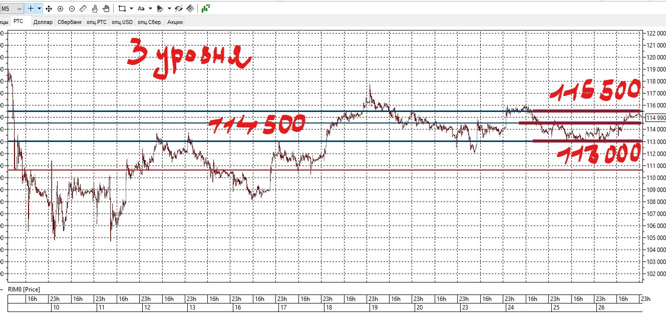 Цель на 113000. На уровне 113200 переставлю позицию в безубыток.Одним фьючерсом уже вышел(+220 пунктов-величина риска)на случай стоп-лосса.