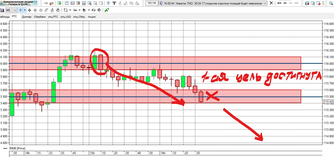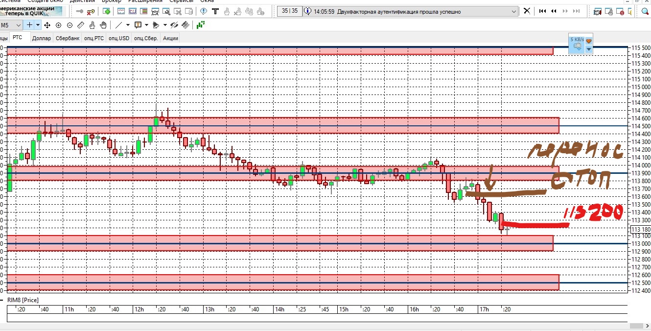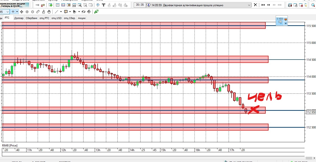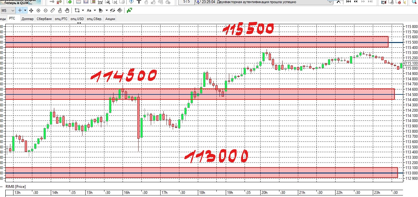 Второй фьючерс достиг цели 113000.Итого по первому фьючерсу 220 пунктов,по второму 640.