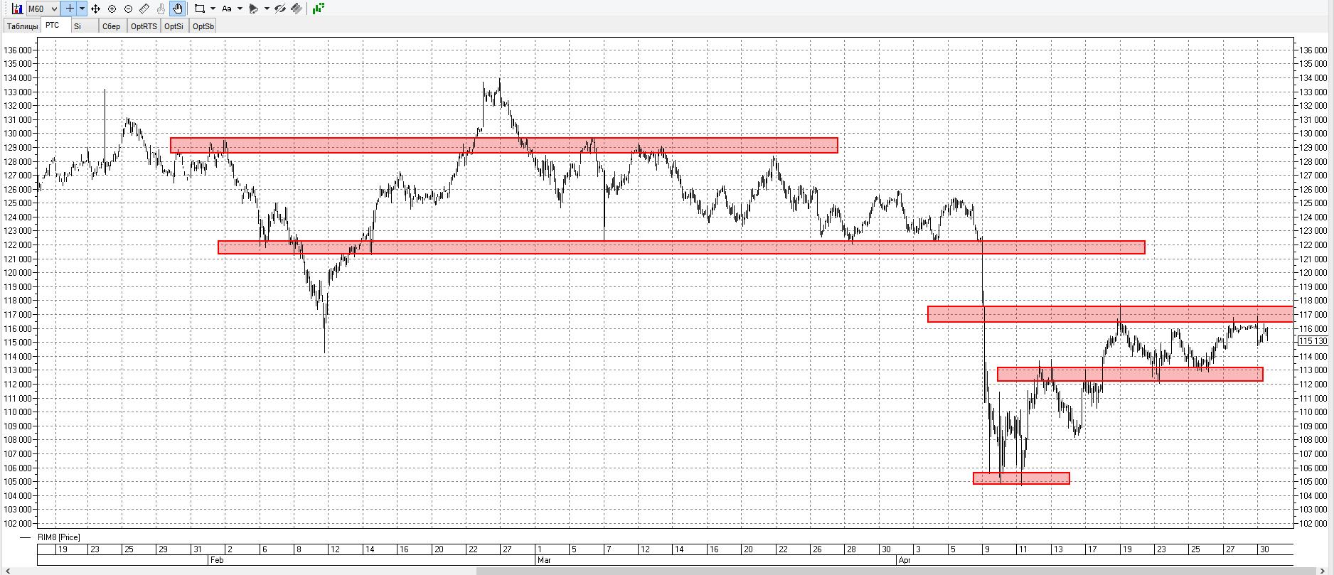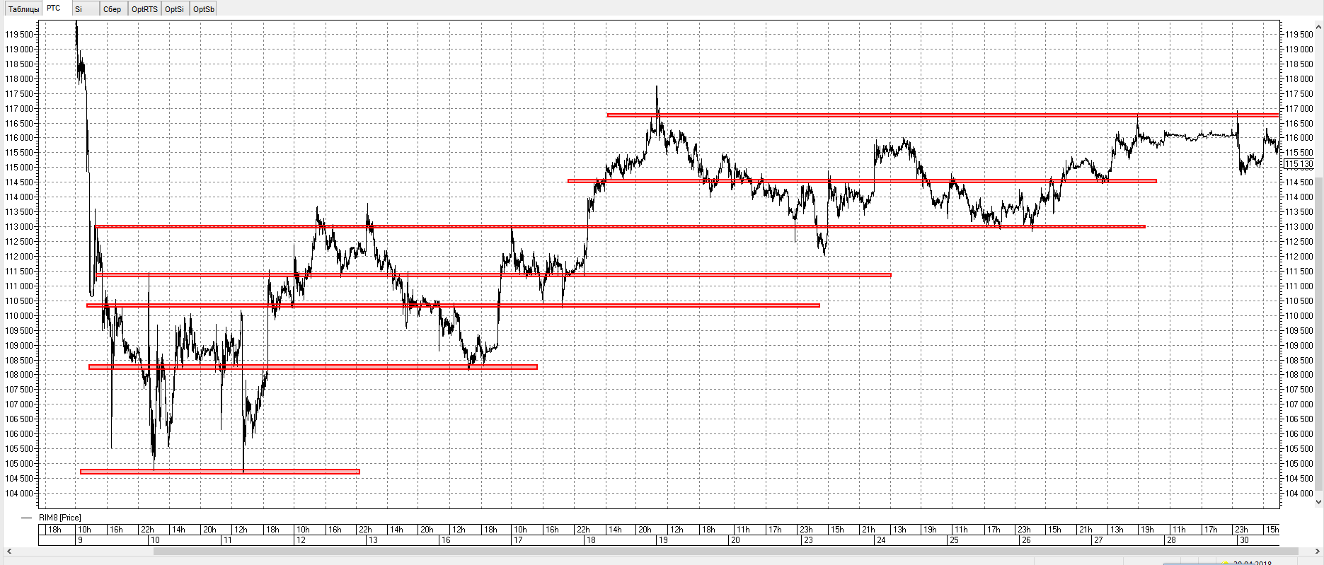 Уровни на 08.05.2018г (РТС, Сбер, Si)