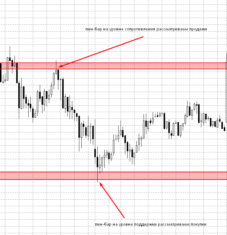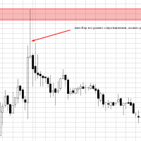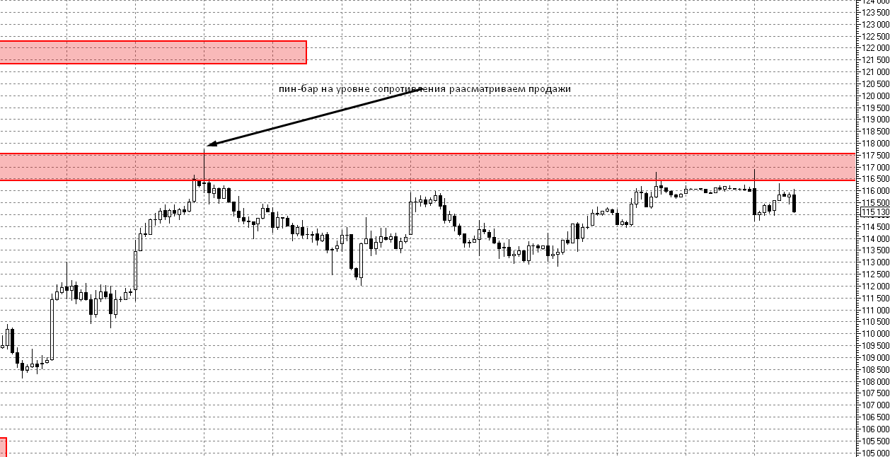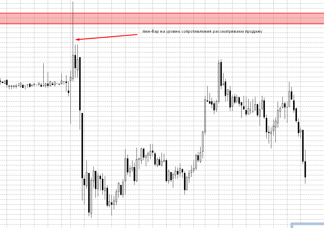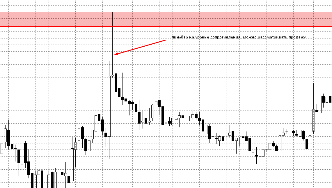 2.Причина пин-бар в диапазоне уровня на ретесте