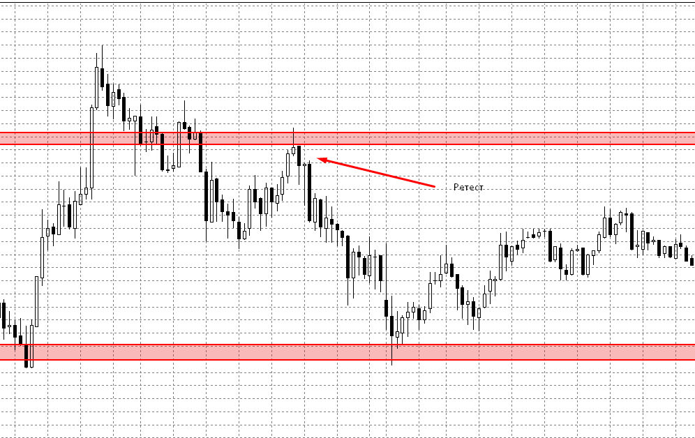 2.Причина пин-бар на уровне при ретесте уровня после пробоя