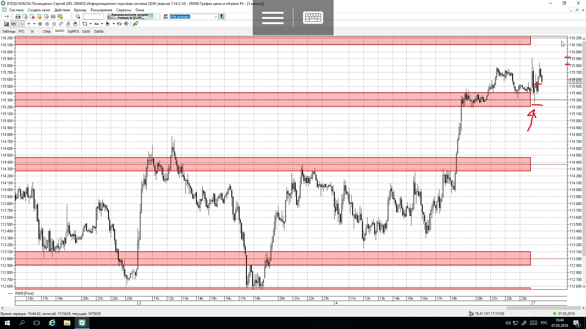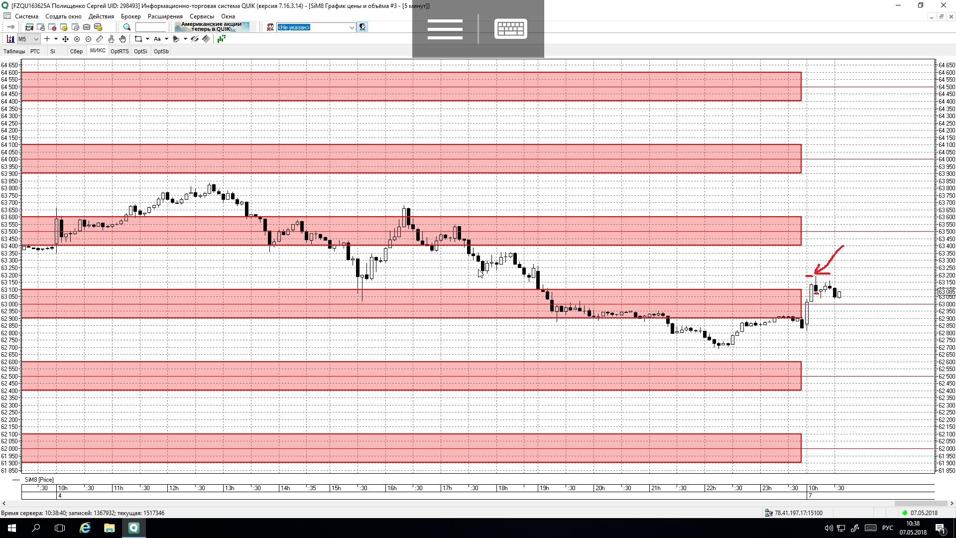 Уровни на 07.05.2018г (РТС, Сбер, Si)