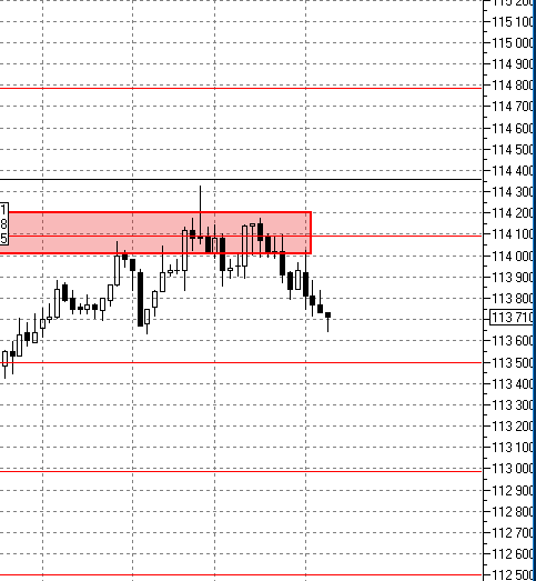 4. Первая цель 113710, вторая цель нижняя граница диапазона уровня 113090 (для лучшего соотношения риск/прибыль возьмем верхнюю границу диапазона ключевого уровня ниже, тем более, что общая тенденция движения в шорт)