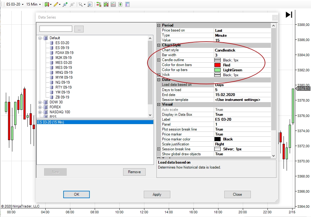 Как добавить инструмент и настроить график