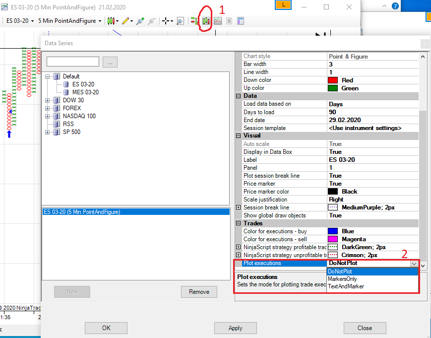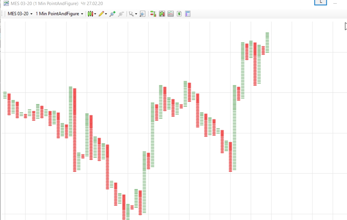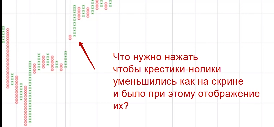 Подскажите пожалуйста как в Ниньзи 7 сделать отображение на графике крестики-нолики? Создал график в Point and figure ,но изображение несколько отличается от крестиков-ноликов. (На скрине можете глянуть.)