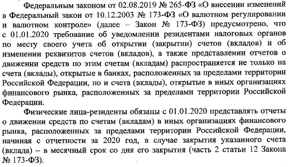 Но закон оговаривает, что о брокерских счетах, открытых до 2020 года сообщать не нужно.Олег, ссылку на закон можете дать?