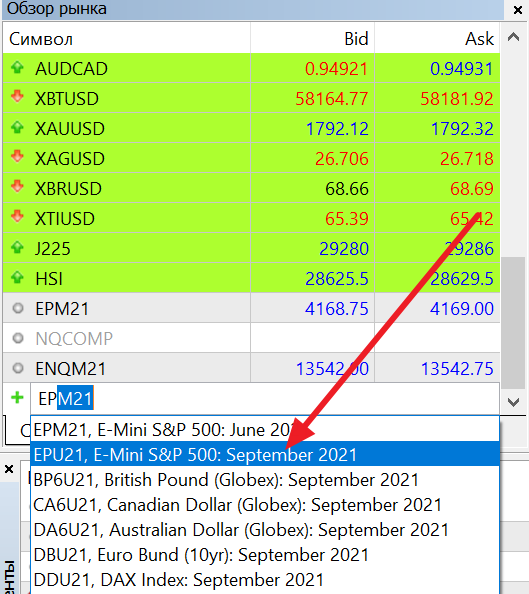 тикер EPU21 - это фьчерс S&P 500 mini