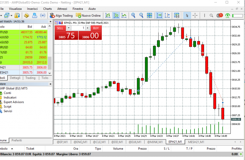 Перед просмотром мастер-класса у вас должна быть установлена платформа и настроен график по 2 инструментам: тикер EPM21 и тикер MESM21.