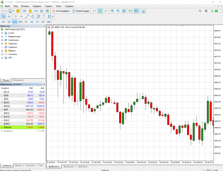 Перед просмотром мастер-класса у вас должна быть установлена платформа и настроен график по 2 инструментам: тикер EPM21 и тикер MESM21.