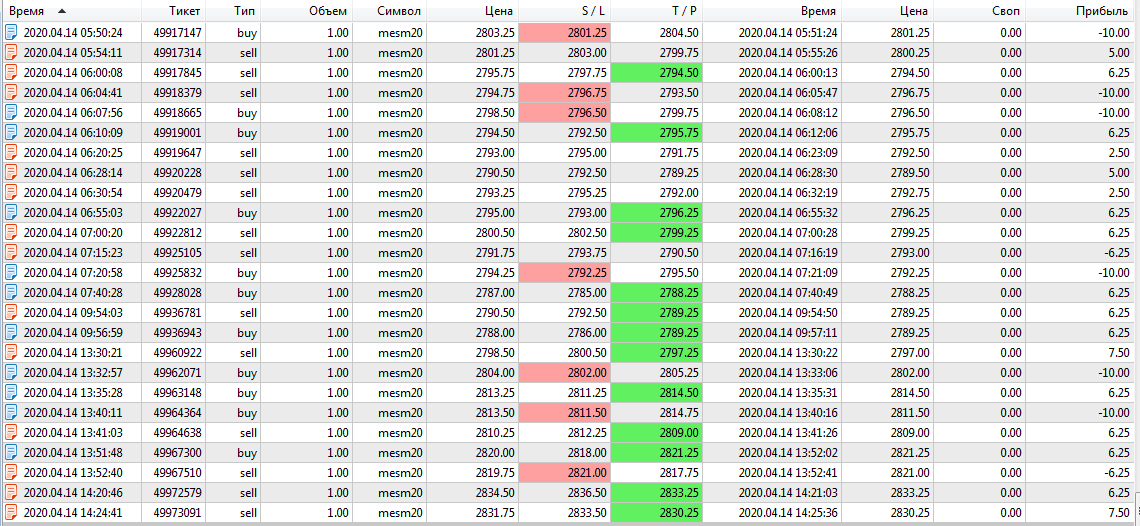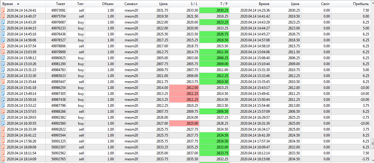 Учусь на демо-счёте. У меня есть реальный счёт с маленьким депозитом на АMP. К сожалению, не знаю почему, но комиссия на реальном счёте - 1,89. Хотя вижу у Евгения - 0,74 , у кого-то ещё чуть больше 0,8. При скальпинге комиссия играет огромную роль. Анализ работы за 14.04. : сделок 72 в течении дня, из них 24 в минус. Не поленилась посчитать: при нормальной комиссии (пусть будет 0,8) итог за день +4,9. При комиссии как у меня (1,89) итог -73,58.