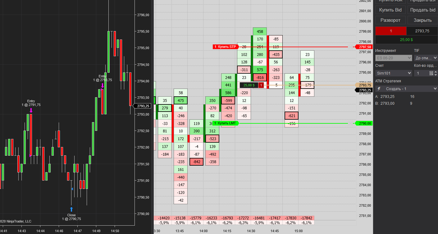 Сегодня собрал волю в кулак и решил строго следовать стратегии и сократить количество сделок до пяти ( раньше делал помногу, объясняя для себя желанием проверить стратегию). Плюс постарался исключить повторные сделки в рамках одной свечи. Итог порадовал - из пяти сделок четыре в плюс (80%). В сделки входил на Ниндзе7 (скрин, естественно, не передаёт текущее значение футпринта в момент входа). Перерасчёт тиков в доллары производил из расчёта микрофьючерса без учёта комиссии, получилось +18,75$ ( результат считаю достойным ).