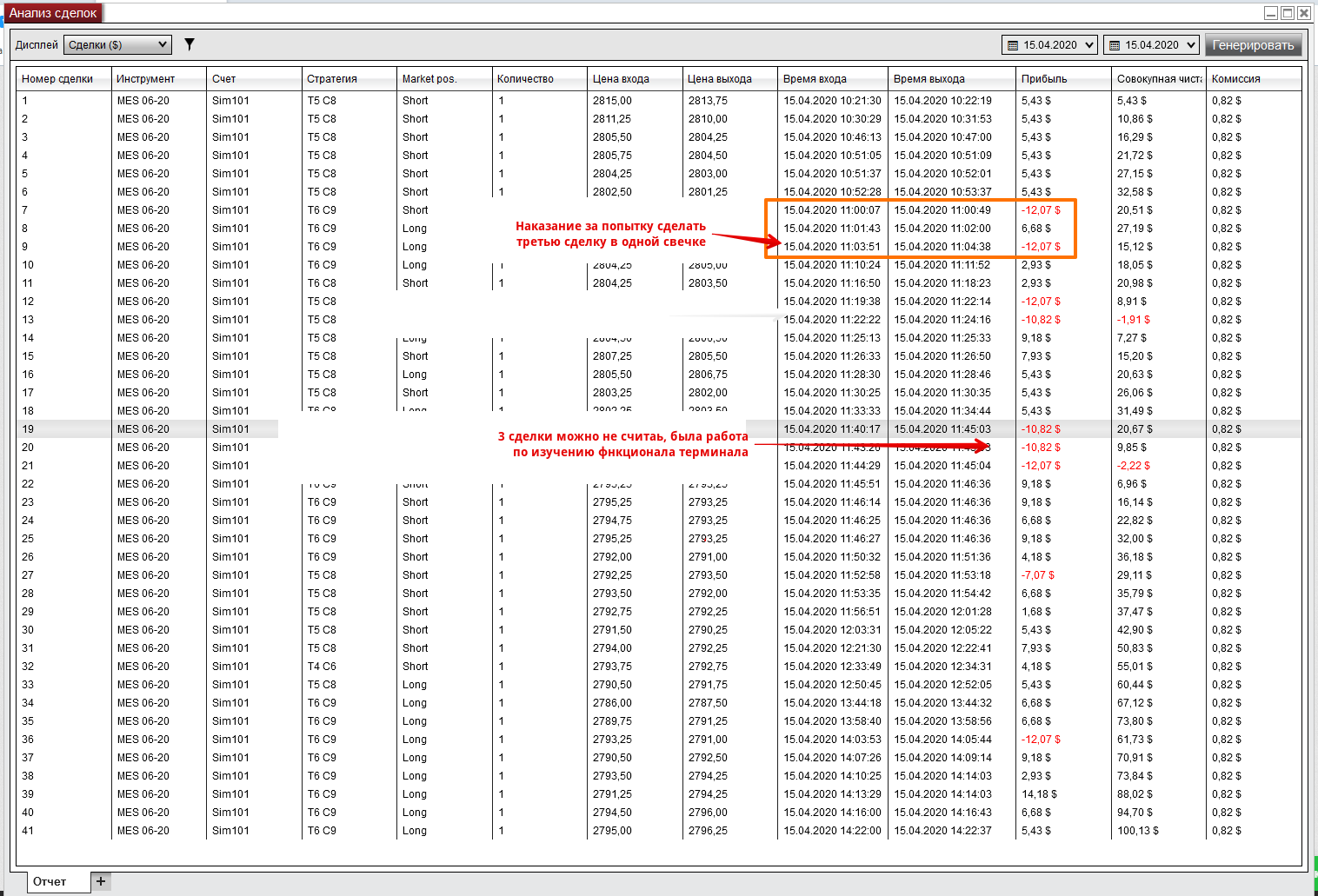 1. Моя первая проба сделок. Результат впечатляет, но почему то комиссия везде стоит 0.00$. Почему так?