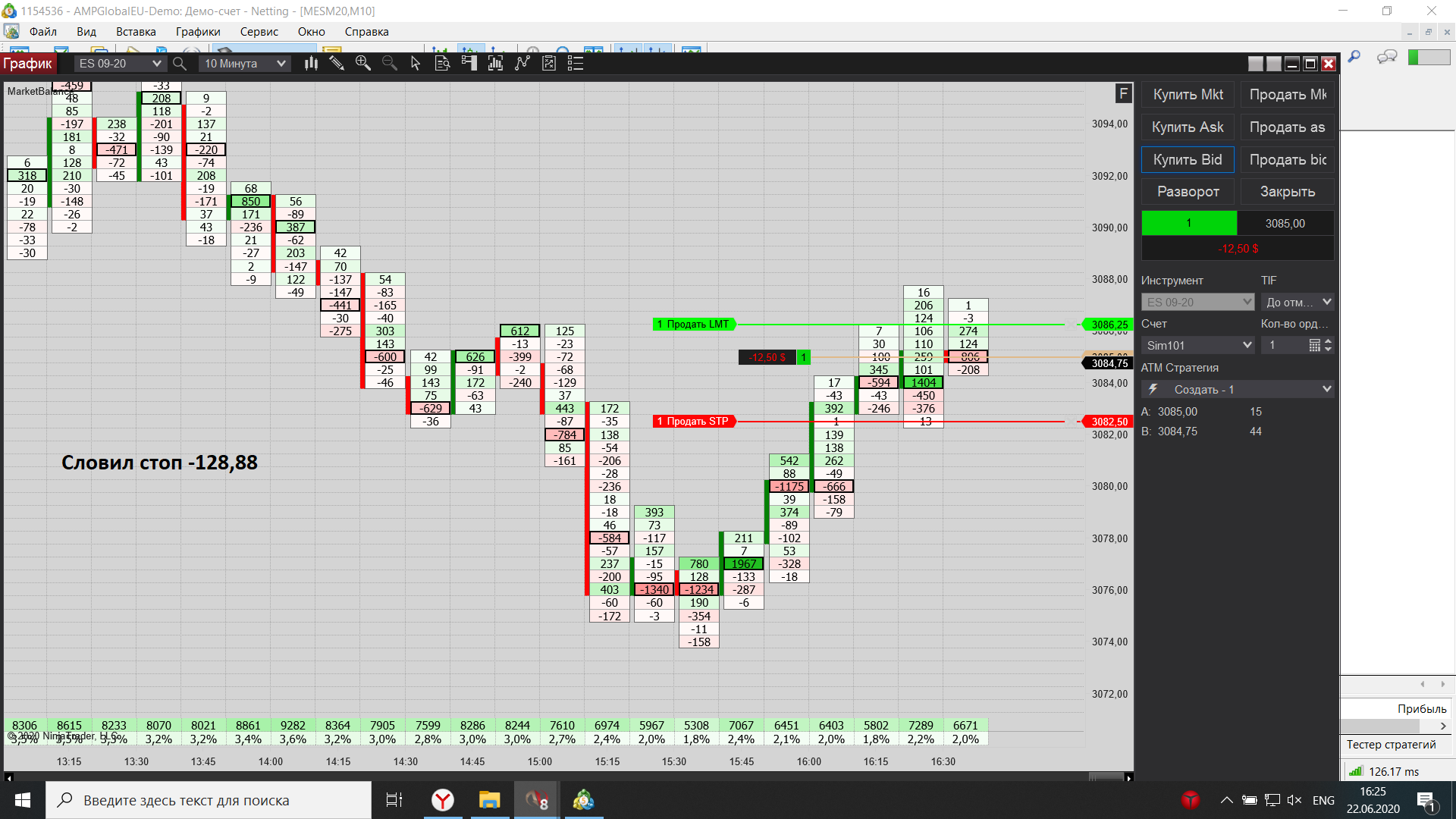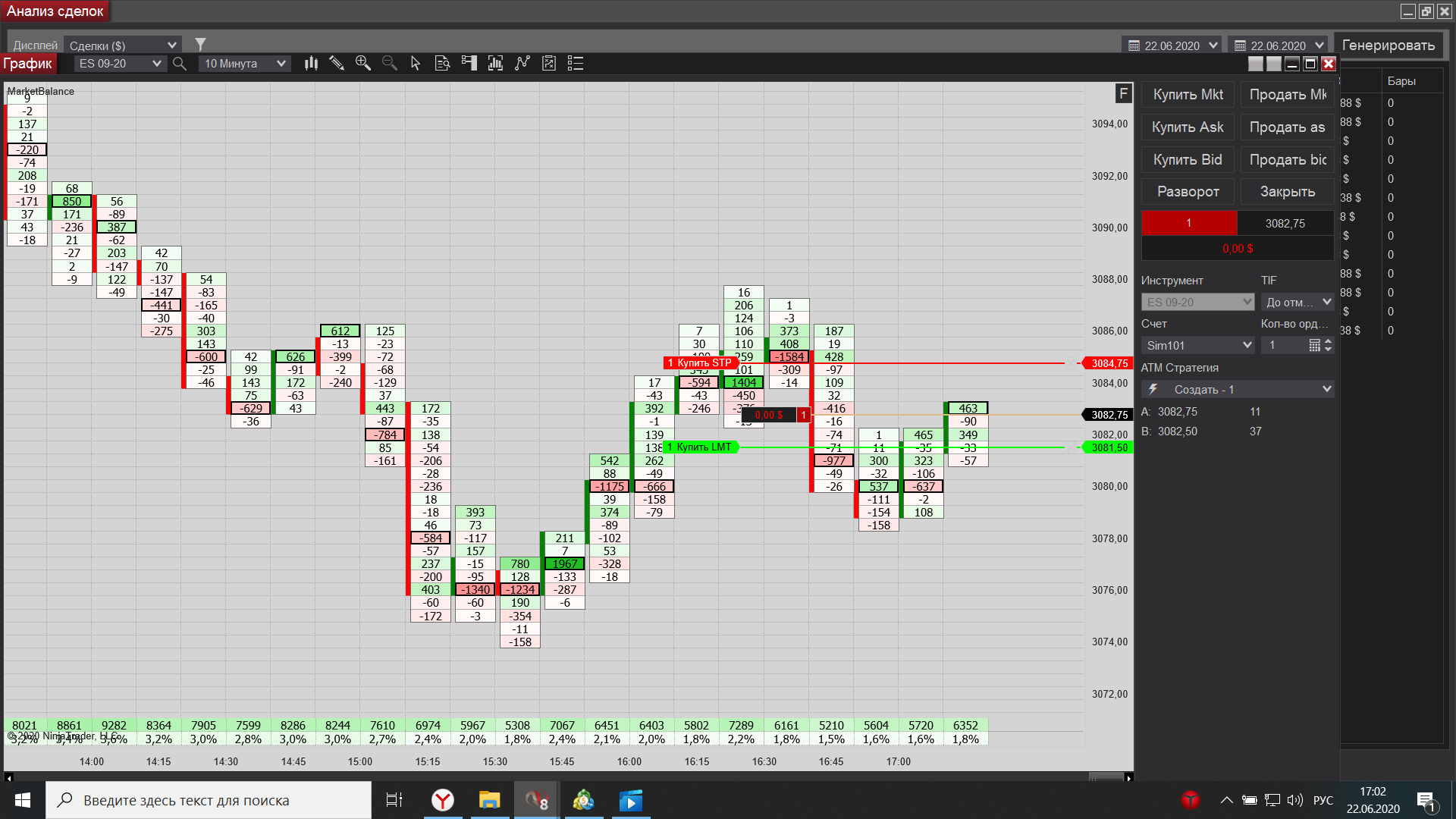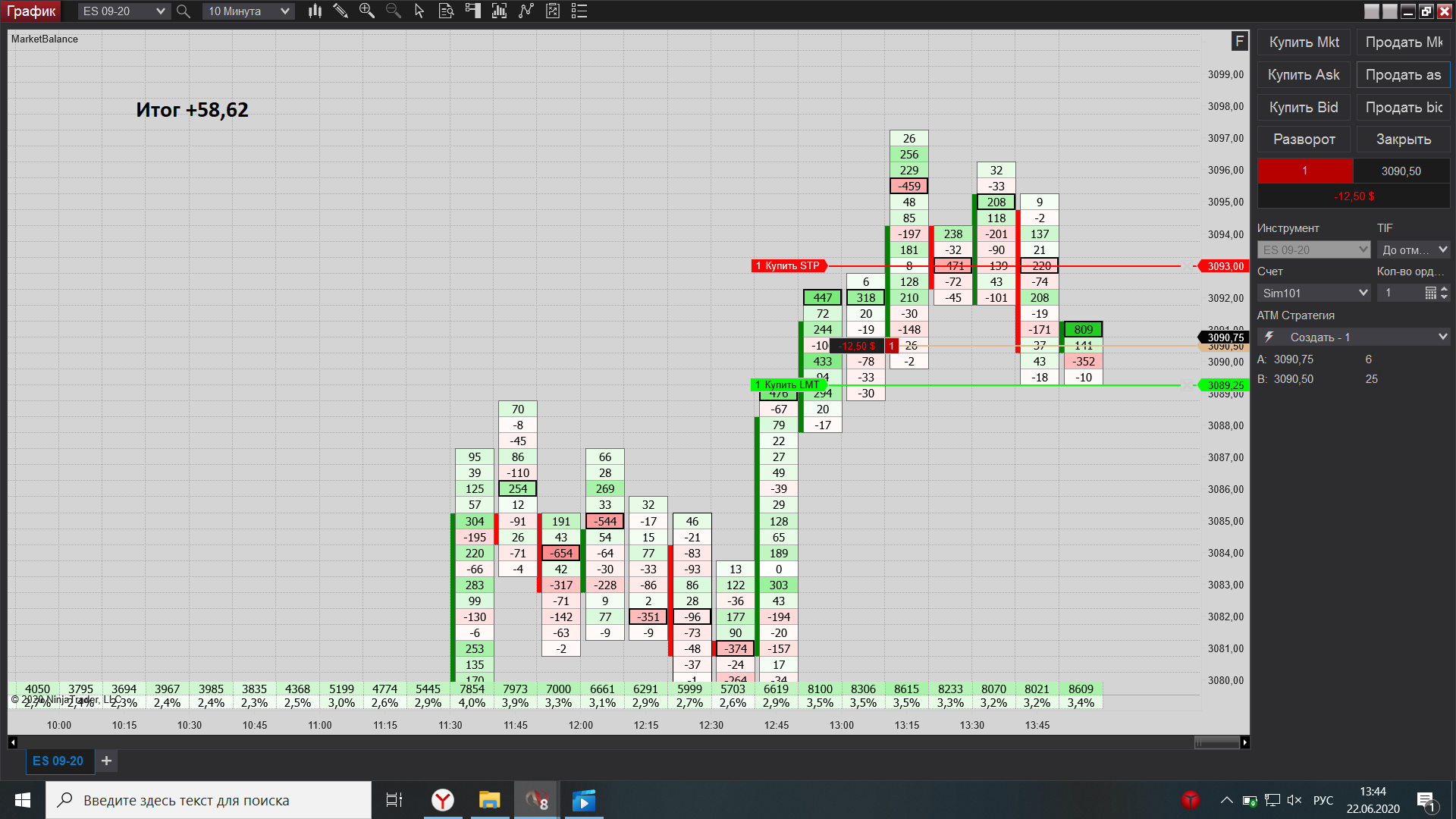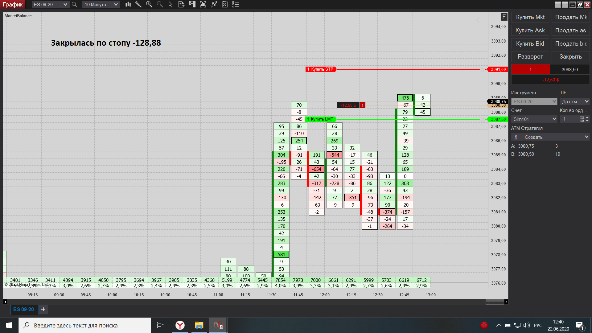 Евгений выкладываю свою торговлю за сегодня, как договаривались на вэбинаре, начиная с америки подключил истинный футпринт, он значительно лучше показывает места остановки, что значительно увеличило кол-во прибыльных сделок по сравнению с убыточными.
