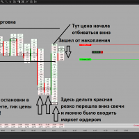 Как и говорил Евгений, не стоит вставать на пути несущегося поезда. Либо дать цене пройти максимум и смотреть, как начинает формироваться много одинаковых дельт и цена как бы поджимается, не идет дальше. Или когда резко появляется аномальный объем.