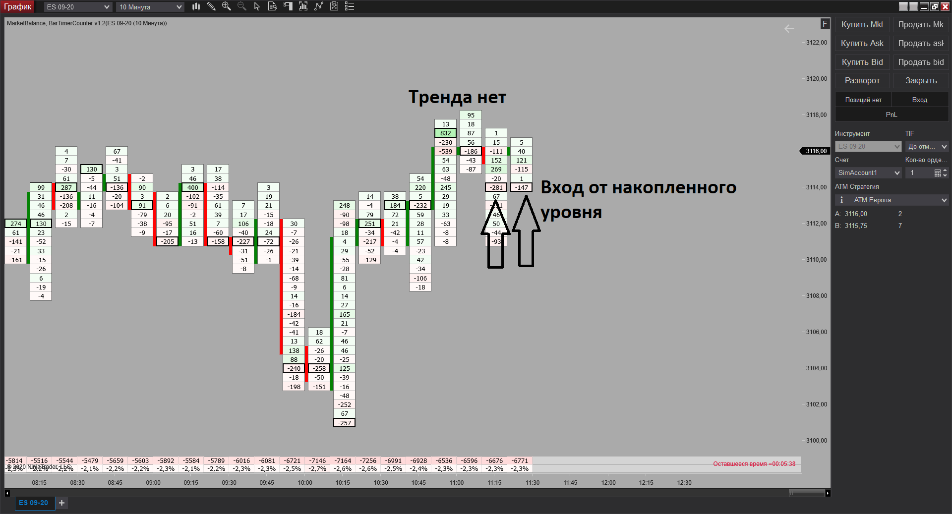 Ничего так работает футпринт! Сегодня медленный рынок! Агрегация 2! Заметила если появляется имбаланс на конце свечи всегда бывает движение в обратную сторону!В сделке по стопу не успела сделать вовремя переворот! Пока тестирую!