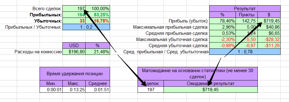 На скрине, подставил данные с моего отчета по сегодняшней торговле в $ на микро. В целом, очень похоже.
