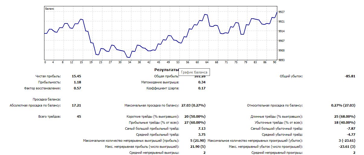 На Америке еще 15 сделок (итого 45). Сразу слил 9 баксов и ушел в минус. Выбрался оттуда только уже поздно вечером +$15