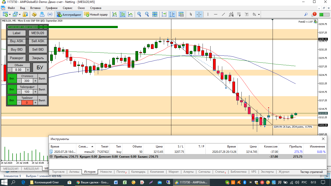 Хочу поддержать тех у кого возможно пока еще не получается торговать. Выкладываю скрин своей истории за месяц (почти 300 сделок) и скрин сегодняшнего типичного торгового дня. Есть еще над чем работать конечно, но в целом пока не плохо. Если у кого то получается, то при должном усердии и у вас непременно получится.