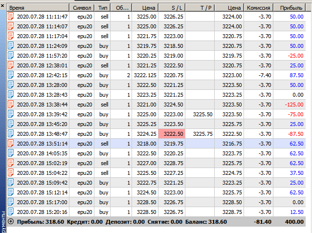 Сергей Петровнаписал28 июля 2020 в 05:07Булат Абдрашитовнаписал27 июля 2020 в 17:45Вторая неделя пошла и везде минус(((Когда вхожу в бай,цена уходит в селл, когда вхожу селл, она уходит вверх, когда рано, цена разворачивается, когда позже, цена уходит.Сегодня ещё поставил комиссию, вообще грустно... Может мне сделать перерыв? Опять сначала всё пересмотреть? Или вообще пока не включать терминал?Настроение ноль...