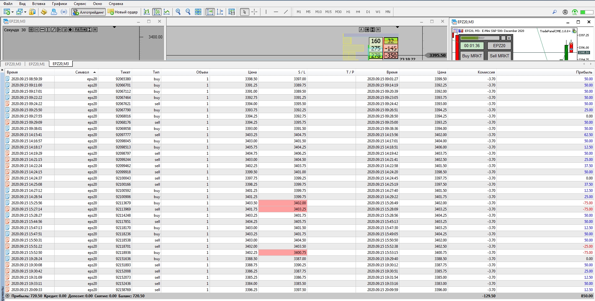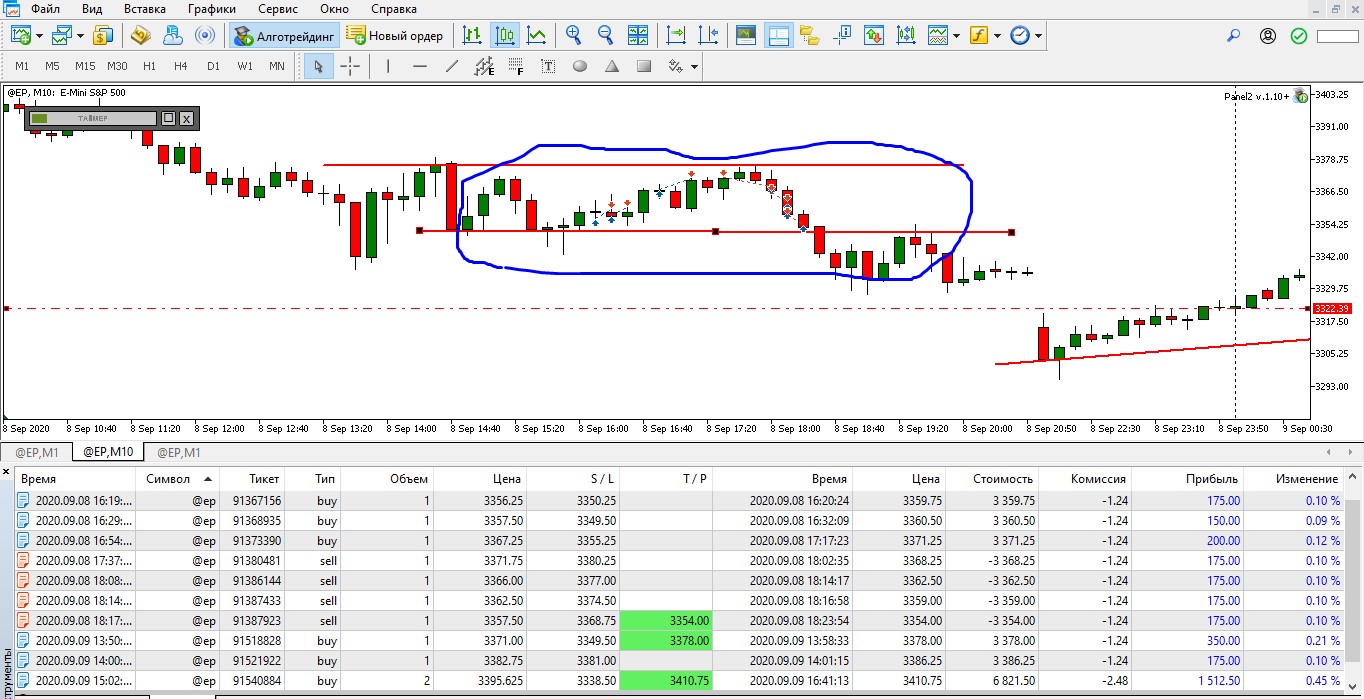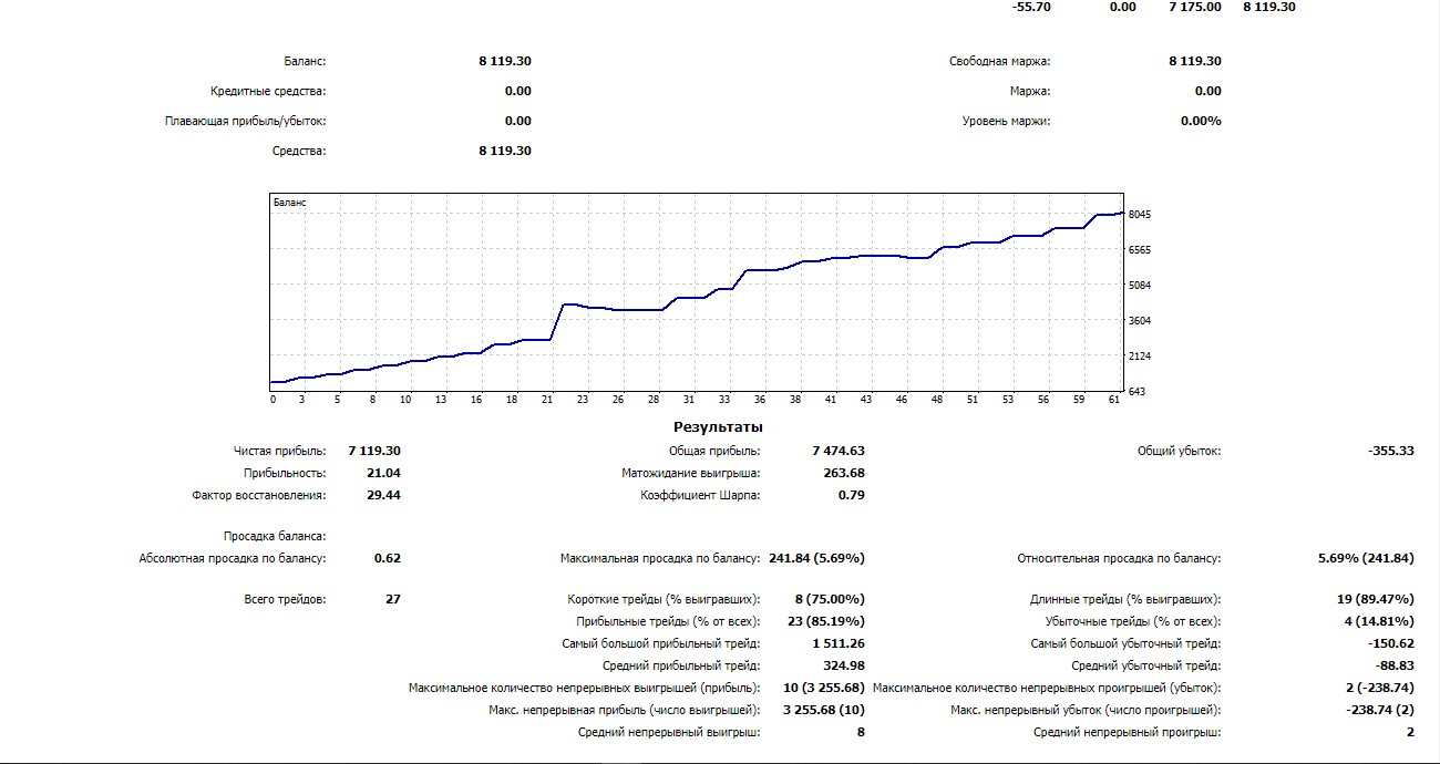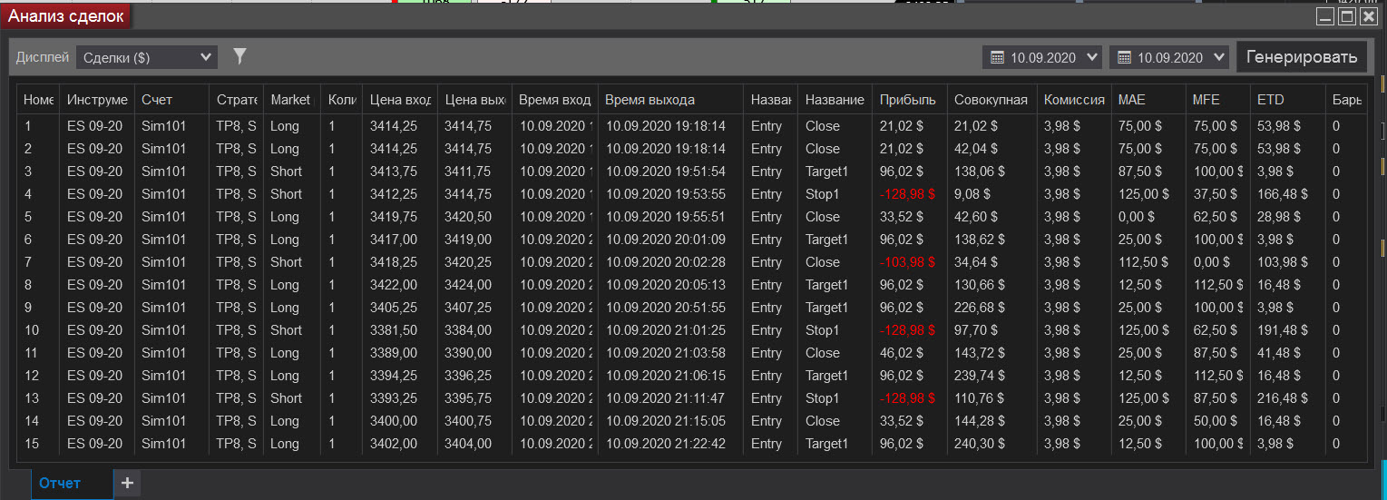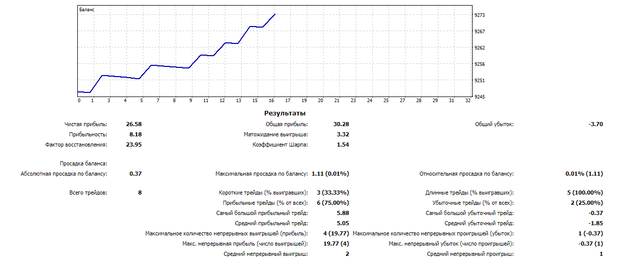 Сегодня 15 сделок, но иногда SL был маловат.