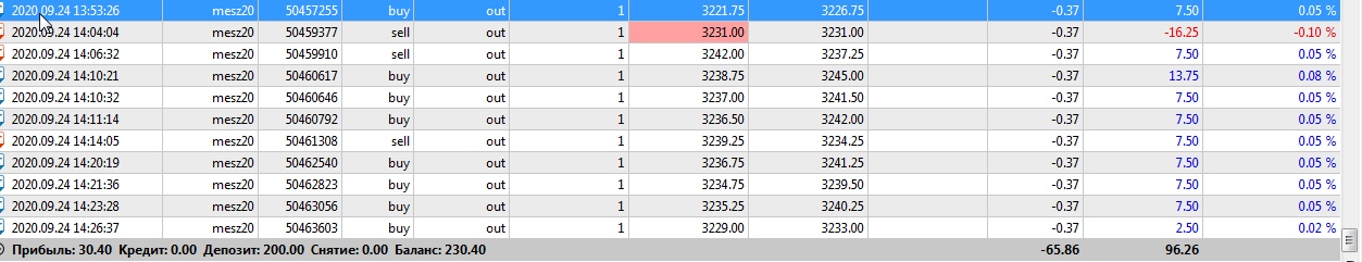 Днём на micro сделал 5 сделок + 42$. А вечером очень " грязно" отработал. 25 сделок, и всего +24$.Но всё равно в итоге за день +66$. Очень много не нужных, не правильных входов. Вот как шило в задницу, вхожу в сделки! Надо себя тормозить!