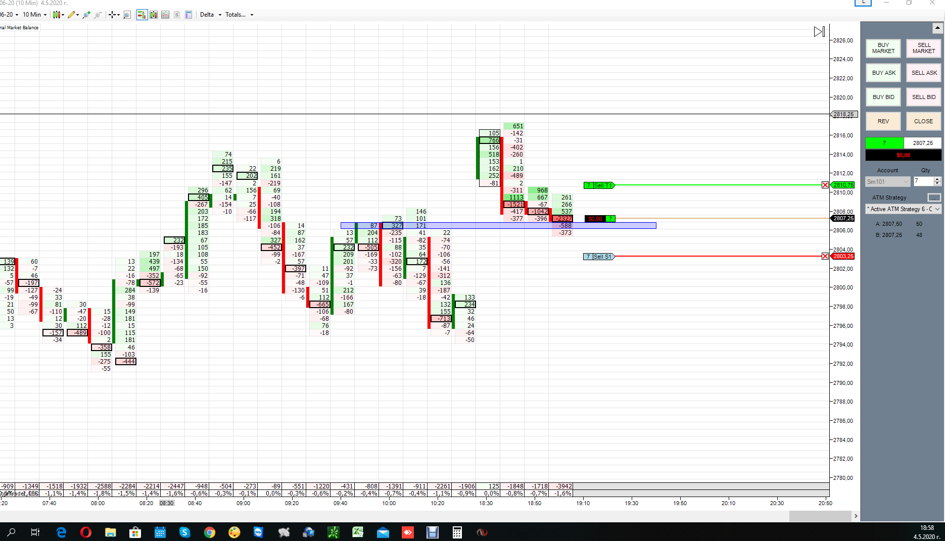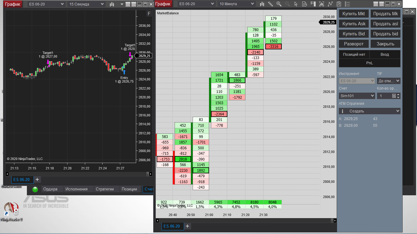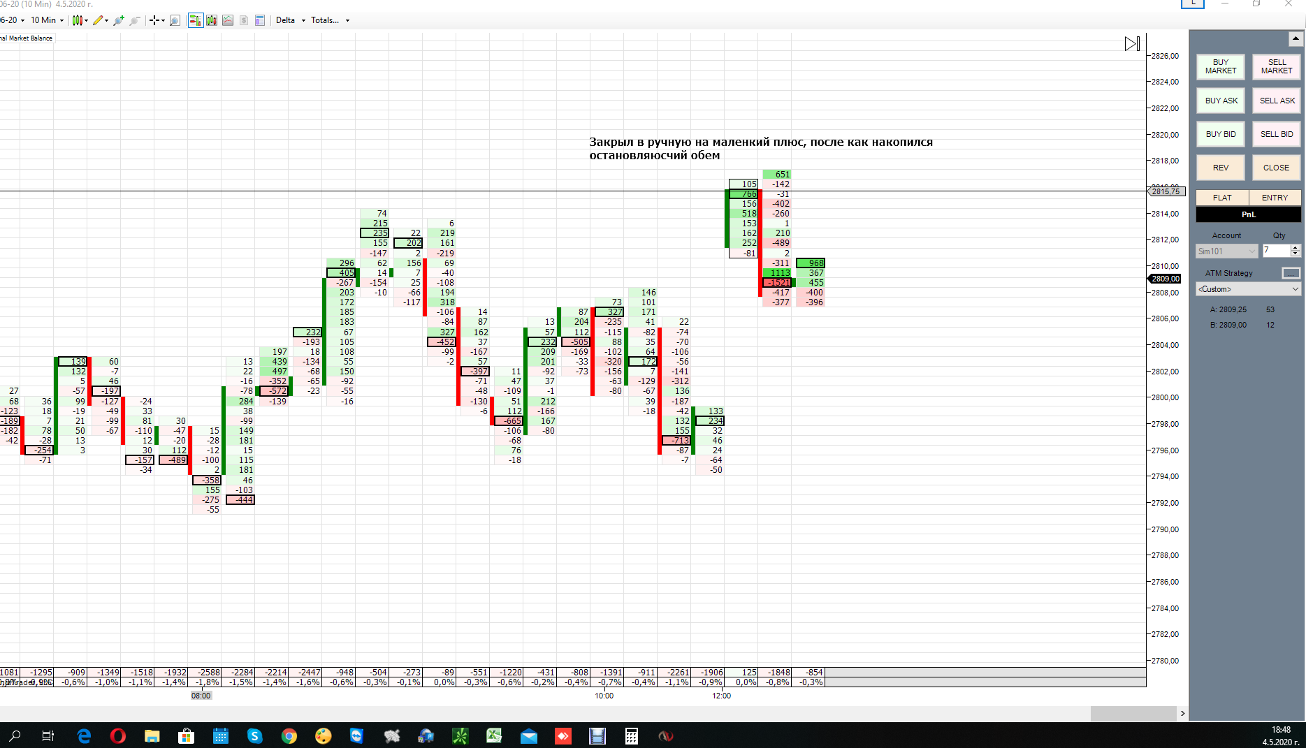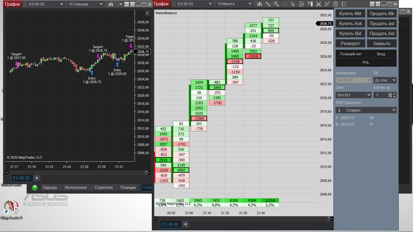 Сегодня первый раз торговал на NT8.Утром( я живу в Сибири) рынок был дохлый. Днём в 12-13 МСК маленько попробовал функционал кнопок. И вечером (16-30 МСК) когда был импульс вот что получилось