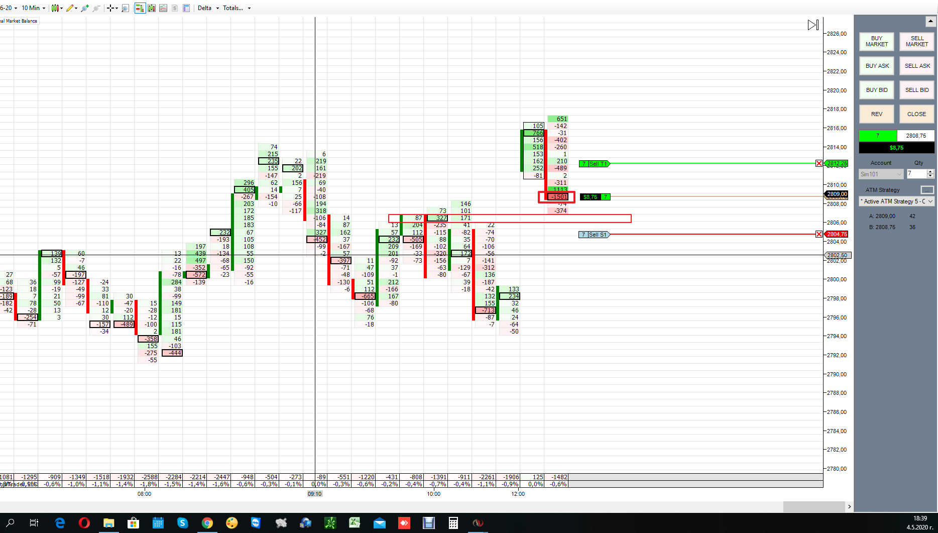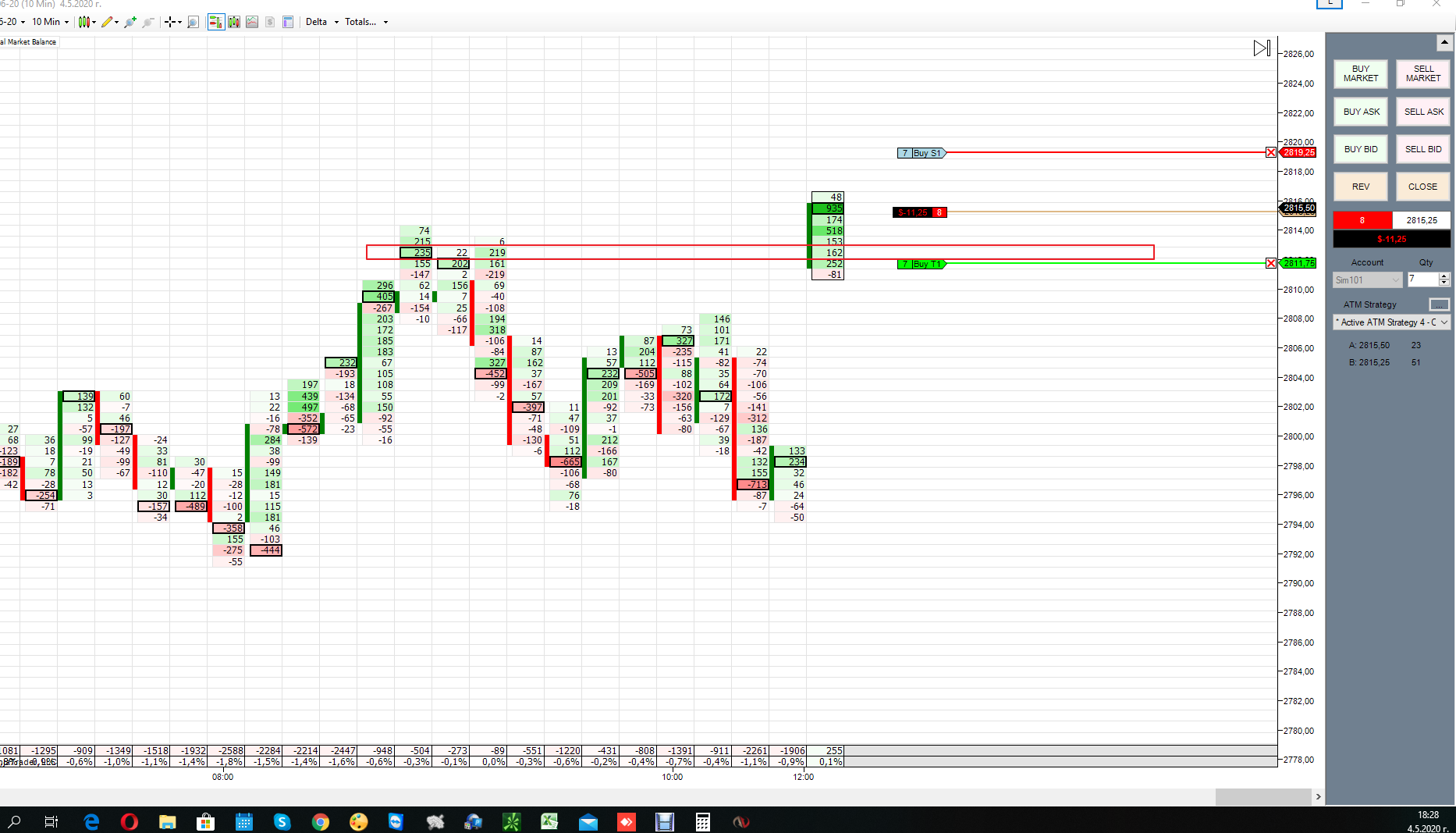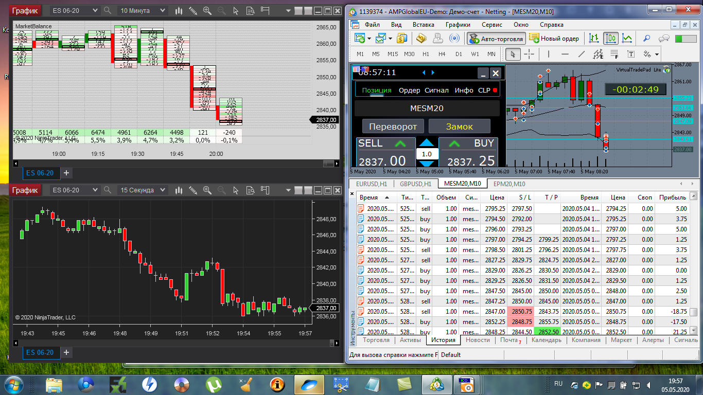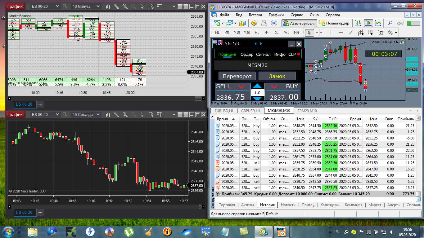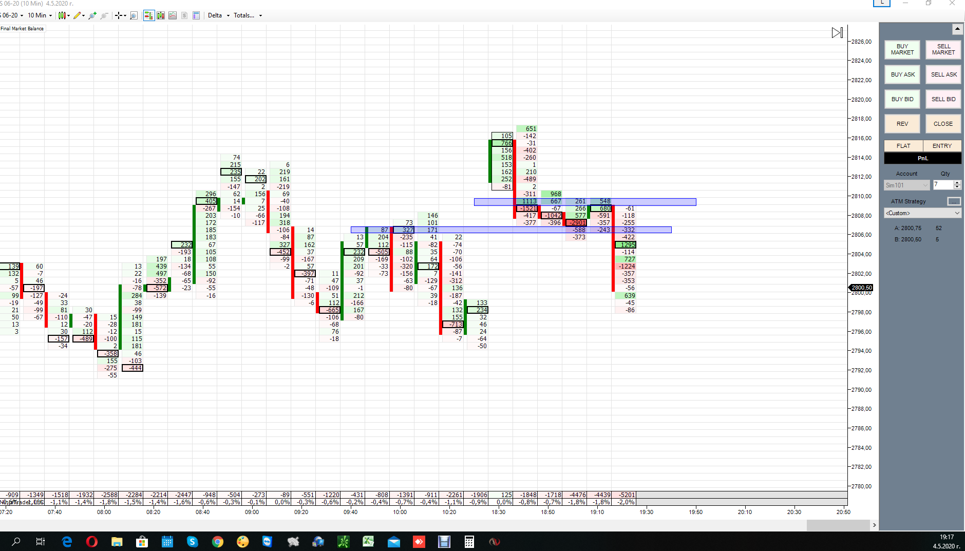 Сегодня первый раз торговал на NT8.Утром( я живу в Сибири) рынок был дохлый. Днём в 12-13 МСК маленько попробовал функционал кнопок. И вечером (16-30 МСК) когда был импульс вот что получилось