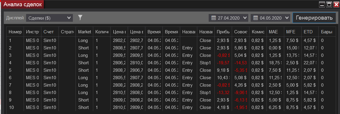 Вчера я наконец-то смог сделать первые сделки после длительного оформления в NINJA. Когда я понял, что могу торговать даже растерялся, поэтому был не собранным, но решил сделать 10 сделок. Торговать начал на 2-ой свече Американского рынка, поставил STL=15. TP=12, но приходилось закрывать сделки вручную, чтобы не улететь в (-). Незаметно волотильность снизилась пришлось изменить настройки STL=12, TP=10. От волнения не фотографировал все сделки, но сделал сводный отчет. Глядя на него думаю, что не надо доводить сделку до стопа, надо закрываться раньше. Второе наблюдение говорит о том, что мне комфортнее торговать когда большая волотильность.