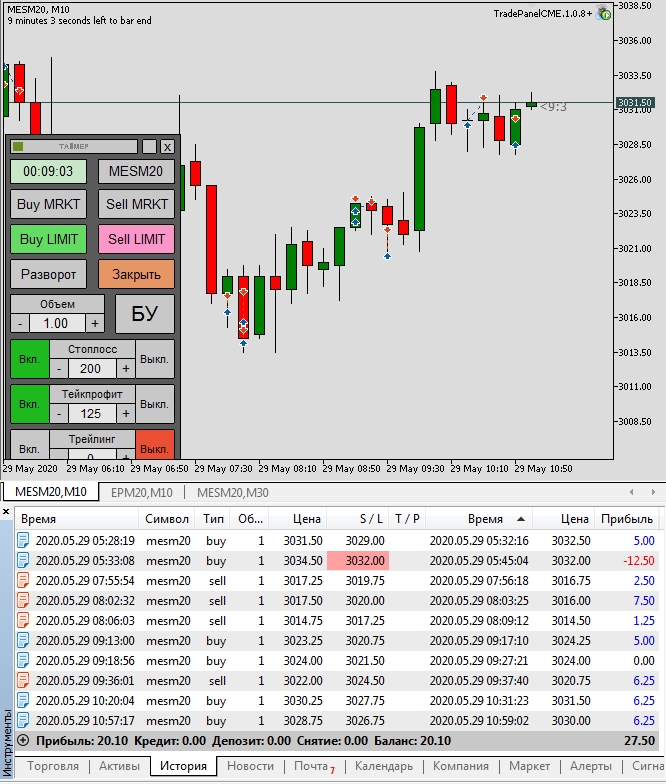 Давид! Со стопом в 50 Вы далеко не уедете! Вас будет постоянно выбивать! Надо разумный стоп ставить! В торговле самое главное не стопы .а правильность входа в сделки У меня сегодня были на Америке и стопы ну и что? Зато общий профит за сегодня на дистанции внизу скрин!