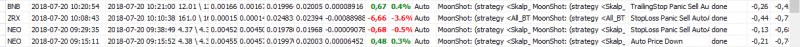 Монету ZRX я уже давно замечал в таких убыточных сделках и поэтому добавил ее в черный список. Она неоднократно мне давала приличные минуса. В авто торговле лучше убрать ее в черный список. Так или иначе действительно непонятно почему стол лосс закрывается в принципе ниже минуса 3% (-3,6%) ведь у нас значение "Panic sell может снижать цену до Покупка -3%?