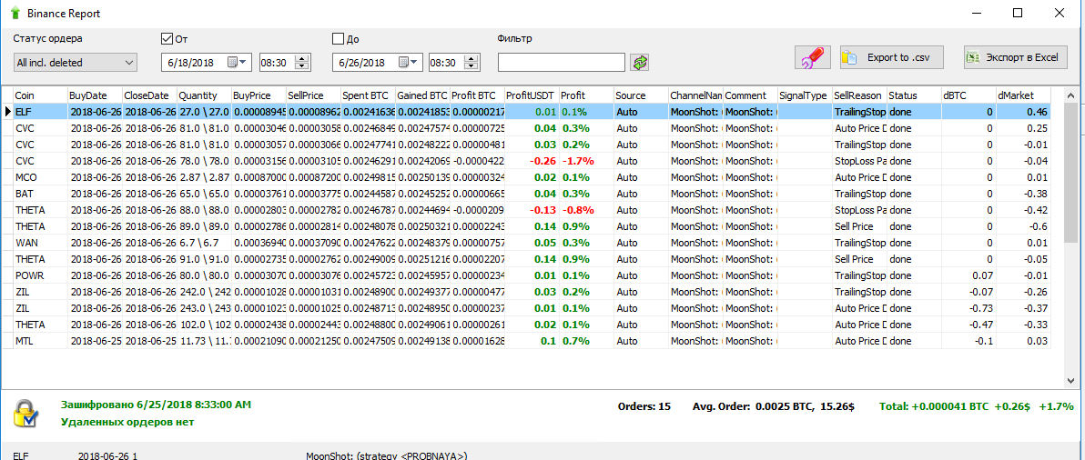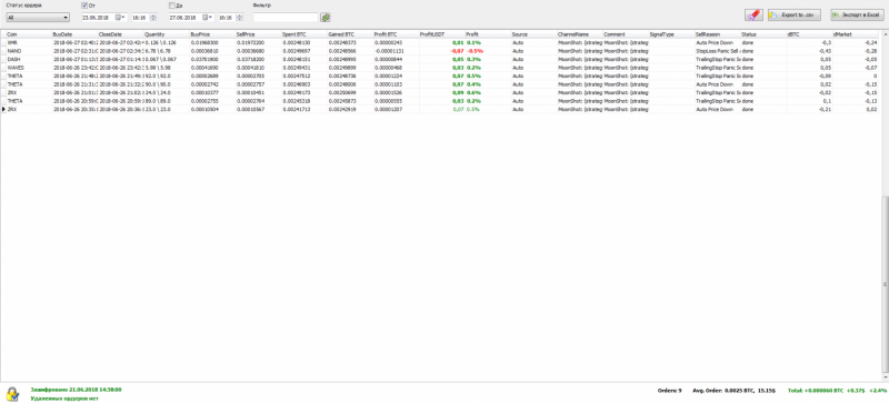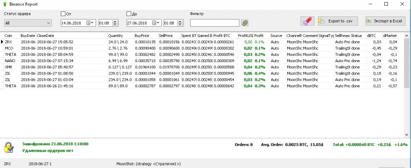 Идея в том. Что если есть монета, график которой подходит под наши параметры торговли. Мы настраиваем алгоритм мун шот, работать только по этой монете с минимальной дистанцией. В данном случае по монете KEY, средняя дистанция около 1%.