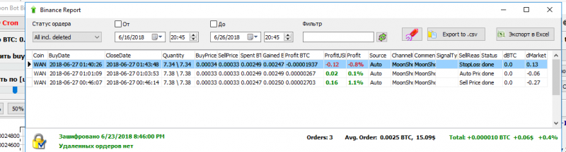 Бот работал по настройкам 1 дня