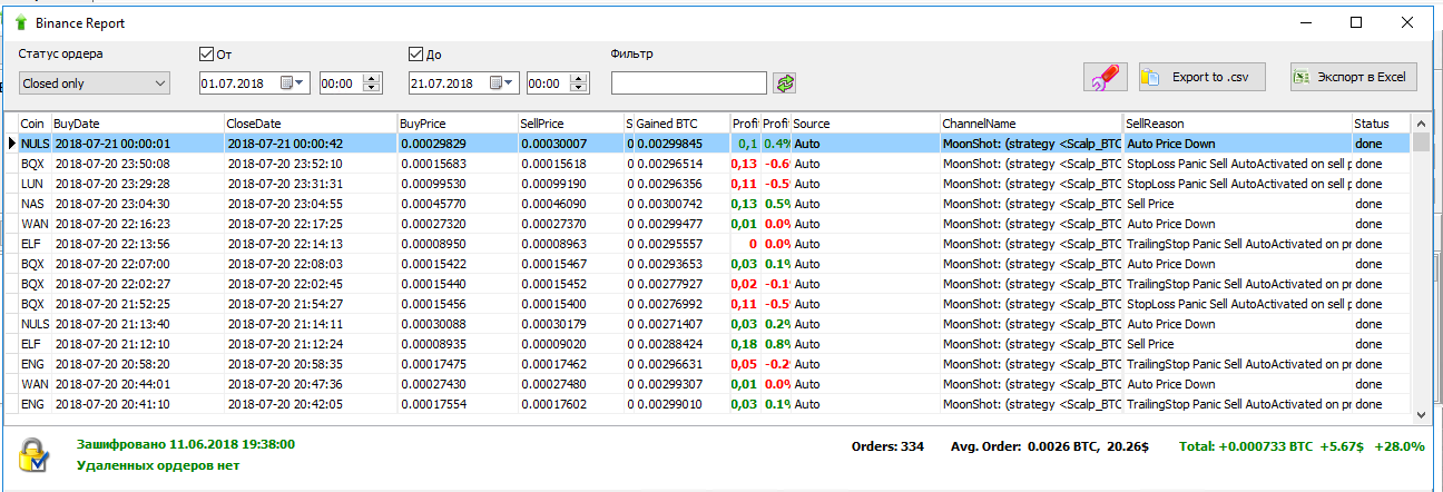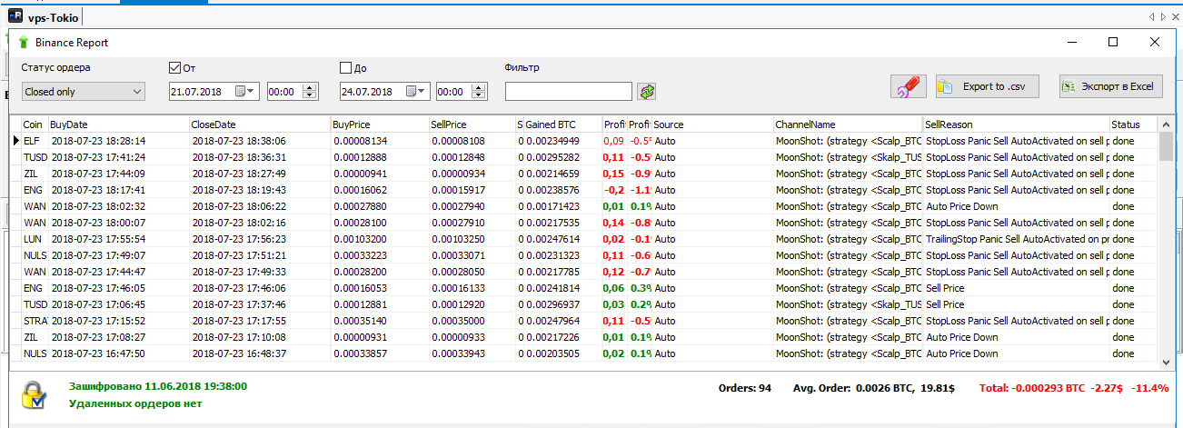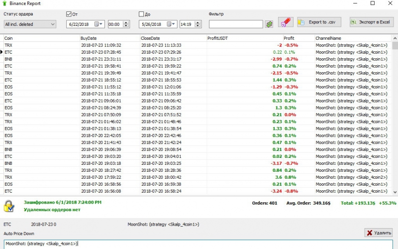 Vasily Temnikovнаписал23 июля 2018 в 22:10У вас по какой то причине так получилось за пару дней, но это не повод все отключать. Вообще все стратегии работают в плюс.Евгений Стрижнаписал23 июля 2018 в 17:27Не знаю ,что будет дальше-я вырубил Бот,пока все не слил,но реальность такова,что за 3 последних дня убыток только увеличивается...скрины прилагаю ниже:Игорьнаписал23 июля 2018 в 12:15Сейчас доходность как раз 10-15%