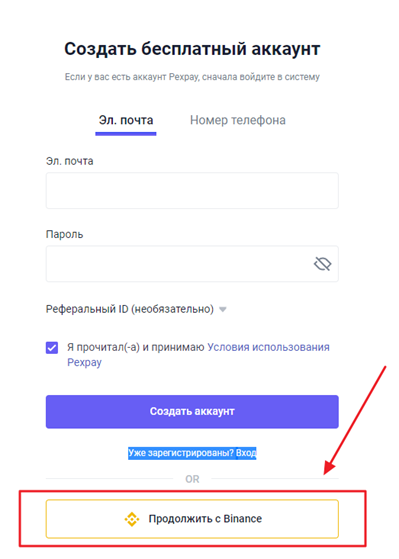 «На стартовой странице «Pexpay» предлагается вариант продолжить регистрацию через «Binance».