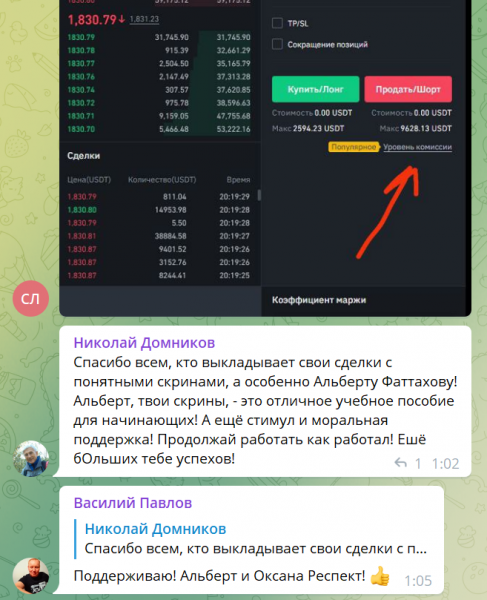 Уже месяц в специальной закрытой группе больше сотни человек ежедневно практикуются и зарабатывают деньги. А в нашем торговом чате царит дружелюбная атмосфера взаимопомощи: