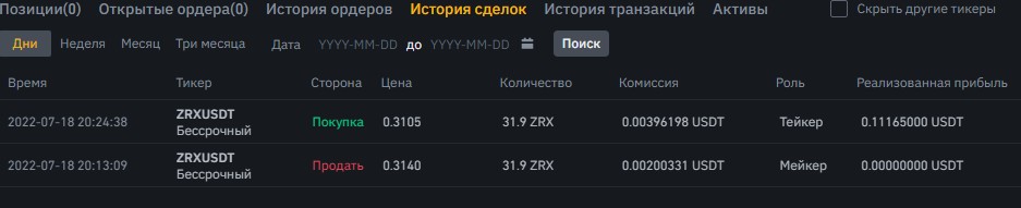 А вторая минусовая сделка это моя техническая ошибка, вместо ордера на продажу поставил на покупку и не сразу понял что ошибся, потом закрыл с убытком.