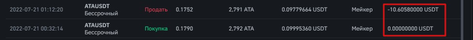 ATAUSDT, эта сделка минусовая и сработала она не по стопу, а закрыл я её гораздо ниже на сайте Бинанса. Непонятно мне по какой причине не сработал стоп-лосс, он просто исчез из стакана, когда цена его достигла и двинулась еще ниже. Получился убыток больше чем мог быть. Может быть у кого-нибудь было что-то подобное, подскажите почему если знаете возможную причину.