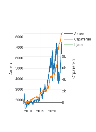 2) Если хотите явно обыграть рынок в целом, берете 1 плечо, используете цикл (тк это краткосрочные инвестиции) и получаете доходность больше чем у пассивного инвестирования и даже посадку меньше. + добавляете в портфель шортовые стратегии + добавляете фильтр тренда (о чем на вебе и будем говорить)