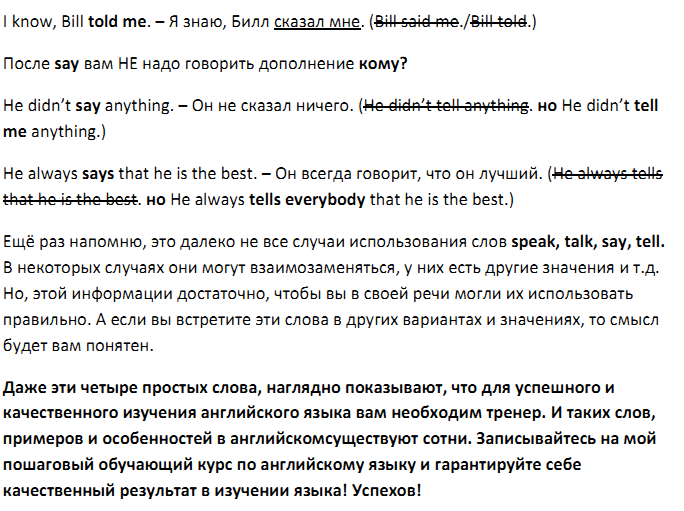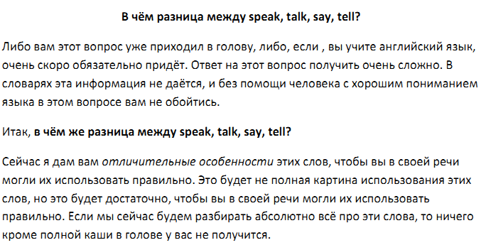 Разница между speak, talk, say, tell