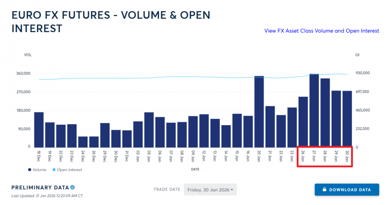 Уточните, пожалуйста, вы смотрите его на этом сайте? https://www.cmegroup.com/markets/fx/g10/euro-fx.volume.html