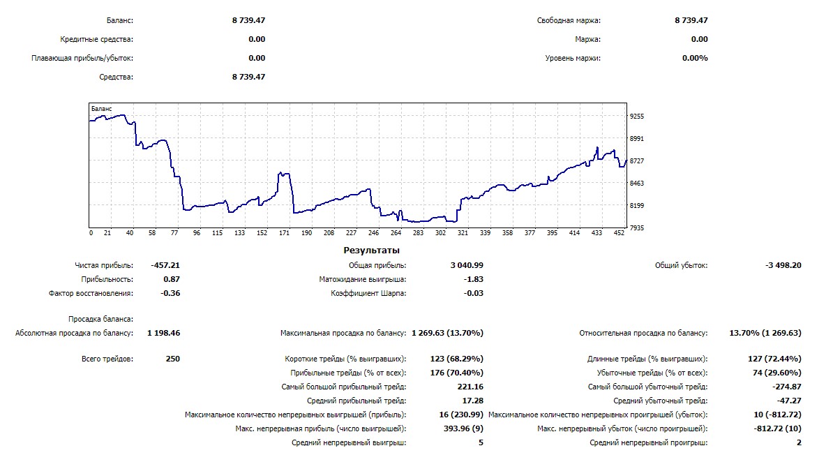 За 01.04.22. получился общий плюс 366,49$. СП500 получил плюс 125,28$. Наздак получил плюс 120,28$. Доу Джонс получил плюс 30,54$. Рассел получил минус -11,9$. Евро Стокс получил плюс 102,29$. За неделю получился общий минус -457,21$. СП500 получил плюс 2,9$, Наздак получил плюс 40,9$, Доу Джонс получил минус -28,08$, Рассел получил минус -50,56$, Евро Стокс получил минус -422,46$. За пять недель тестирования на полном автомате в плюсе Доу Джонс 543,56$, СП500 38,01$ и Наздак 7,88$. Бот стоит на ВПН на демо счёте, брокер АМП Глобал. Включены все кнопки. Торгует одновременно 1 контрактом, таймфрейм М5, на микро инструментах: СП500, Наздак, Доу Джонс, Рассел и мини Евро Стокс. Актуальные настройки почти стандартные, выложены на скринах выше в этой ветке. По пятницам окончание торговли в 19,30ч. по времени терминала.