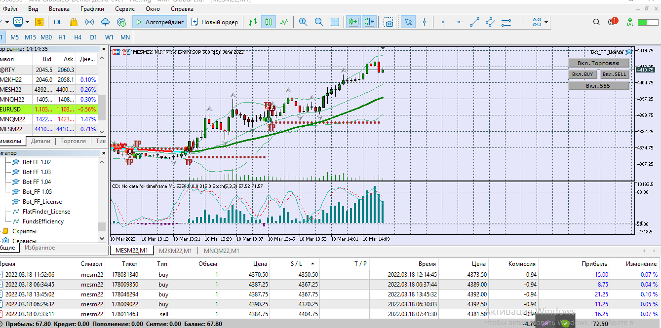 Подбешивает слегка чат. Как Вы не боитесь торговать с такими нервами? Все утрясется. Отчет за неделю, демо. Единственное, пока не буду реал пополнять. На следующей неделе попробую вернуться на счет в Финаме, он есть, но надо пополнить. Бот чудесный.!. Торговала редко на полном автомате со стандартными настройками.(2/2) Фрактал отключала, перенос в б.у оставляла.