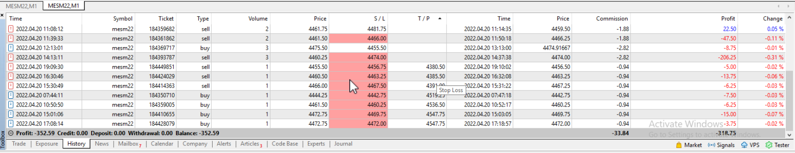 За 20 апреля - минус 352 долл. Сплошные минусы.